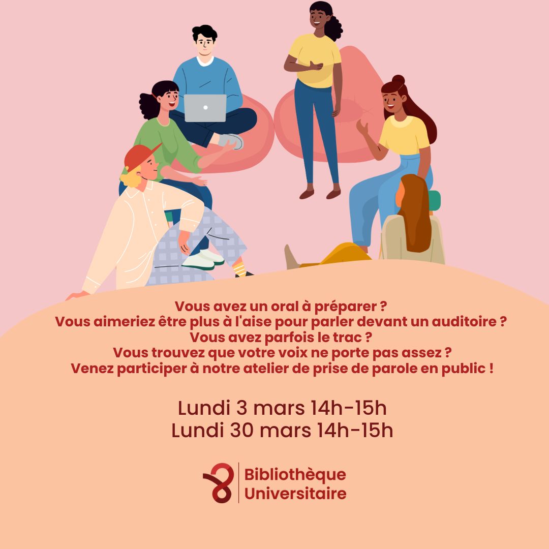 - 2 mars 20269 h 00 – 12 h 00RDV individuel Parler françaislieu : Bulle de la salle jaune
