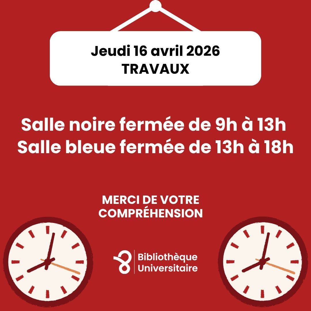 - 16 avril 20269 h 00 – 18 h 00Travaux en salles noire & bleuelieu : Salle noire (BU)