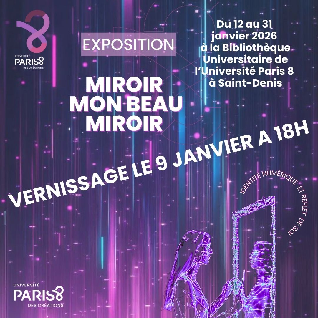 - 9 janvier 202618 h 00 – 19 h 45Vernissage de l'exposition Miroir mon beau miroirlieu : Salle de la recherche (BU)