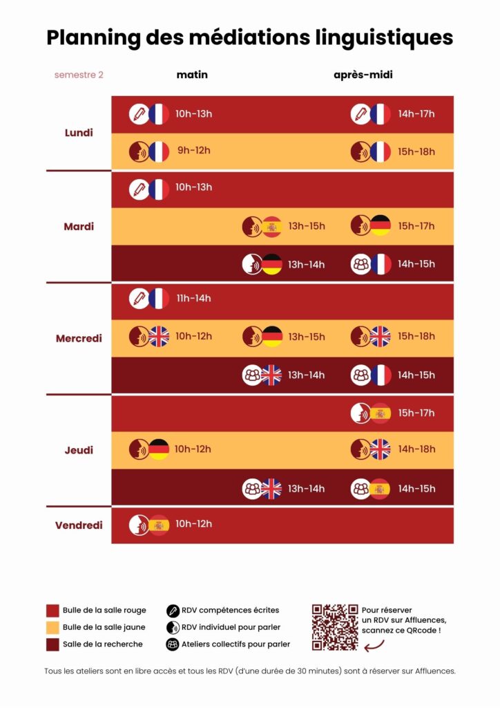 Réservez sur Affluences un rendez-vous individuel et participez librement aux ateliers de conversation, quel que soit votre niveau.