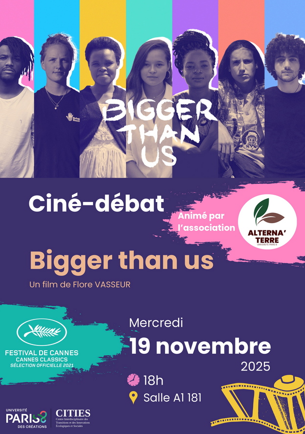 Il s’agit d’un ciné-débat autour du film Bigger Than Us de Flore Vasseur.