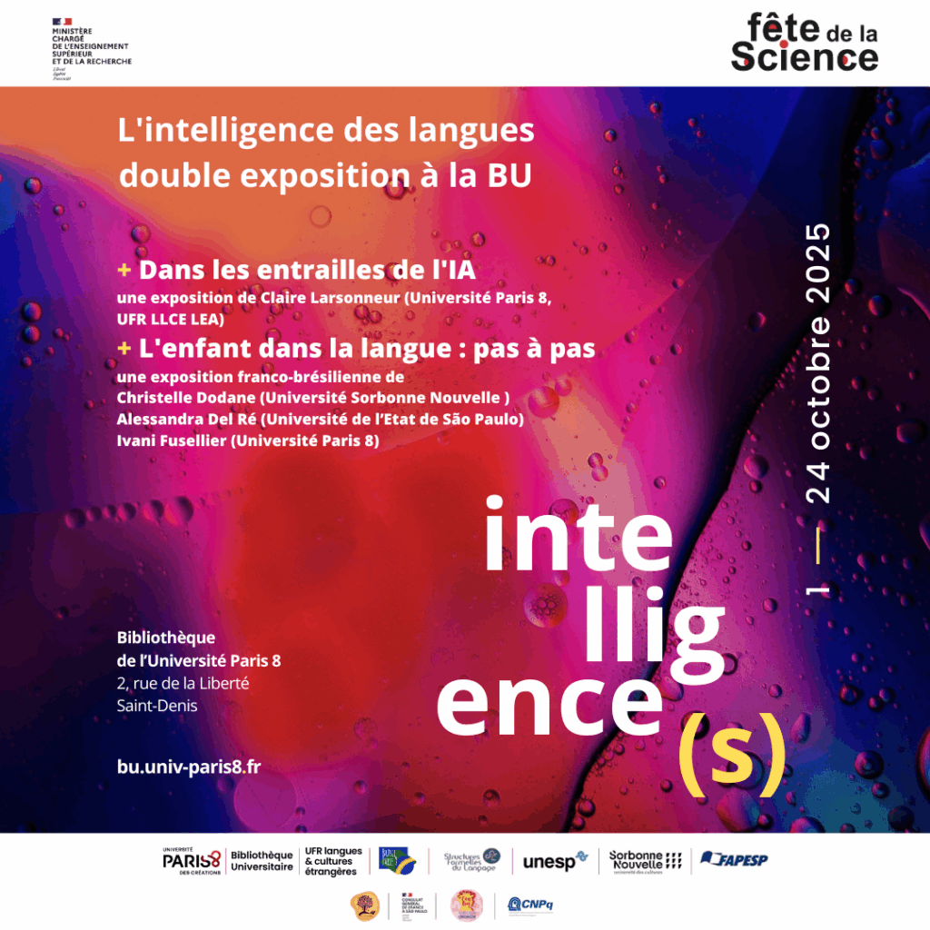 A l’occasion de la Fête de la science et de la clôture de la saison Brésil, la bibliothèque universitaire vous invite à découvrir, entre le 1er et le 24 octobre, une double-exposition Dans les entrailles de l’IA / L’enfant dans la langue.