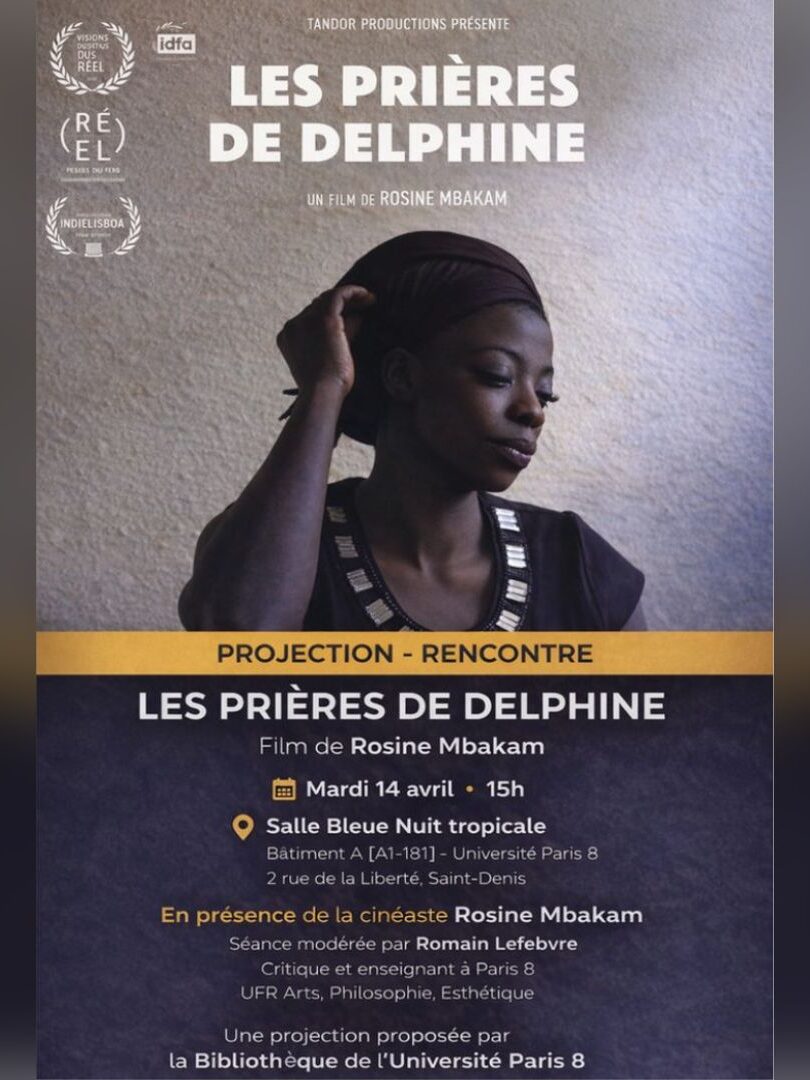 La bibliothèque universitaire vous invite mardi 14 avril à 15h à la projection du film Les Prières de Delphine, en présence de la cinéaste Rosine Mbakam.