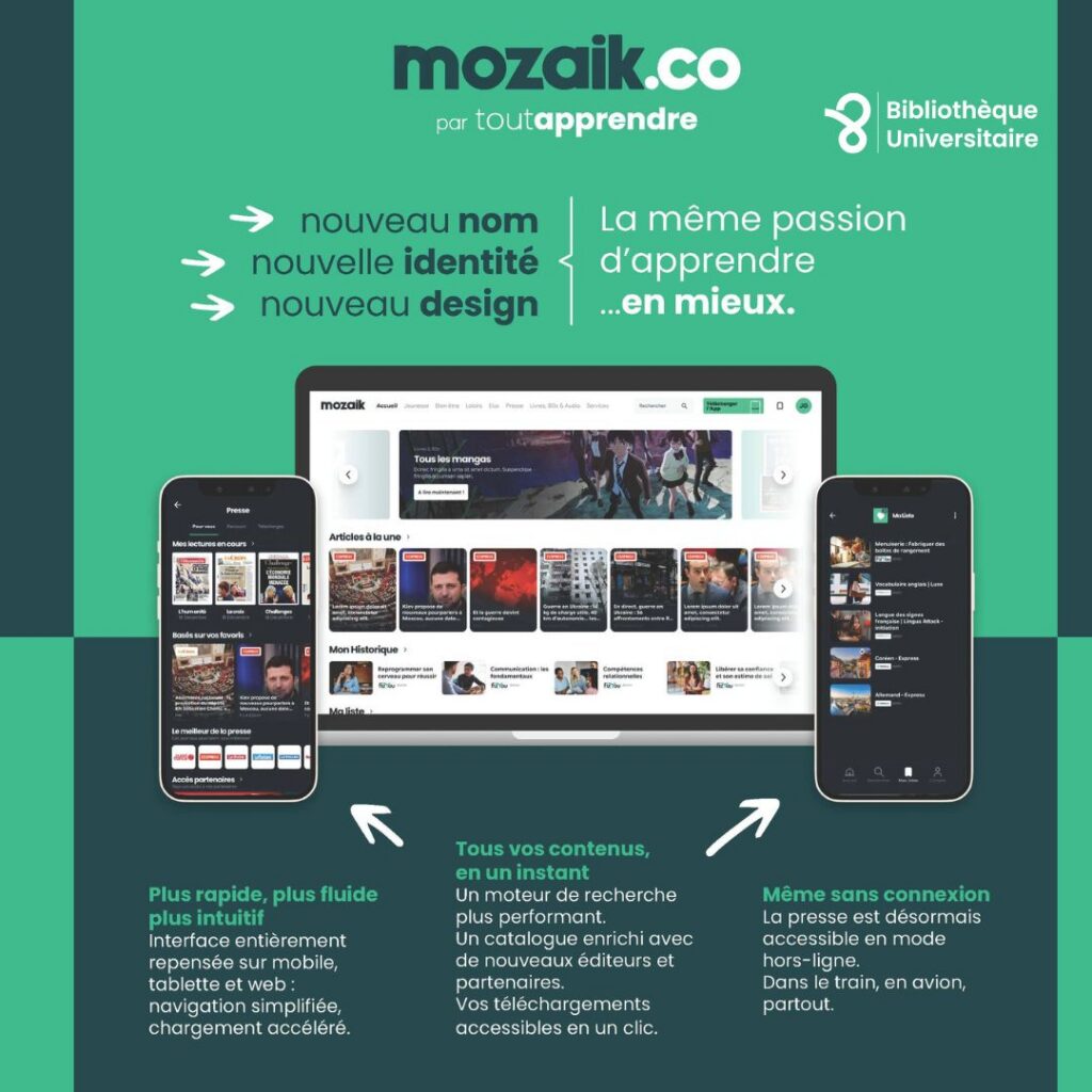 - Si vous rencontrez un problème avec certaines vidéos, vous pouvez les consulter sur mobile : connectez vous à Mozaik.co à partir de votre mobile sur le site de la BU puis cliquez sur Ouvrir l’application, installez et connectez-vous avec votre compte personnel.